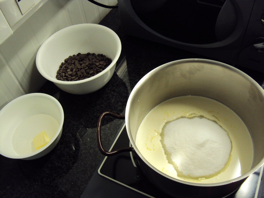 - Portez la crème fraîche et le sucre fin à ébullition en remuant.