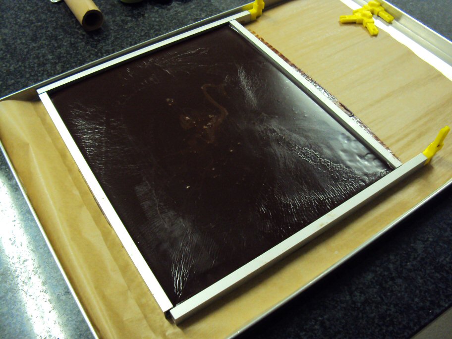 - Verser dans un cadre jusqu’à une épaisseur de 1cm.