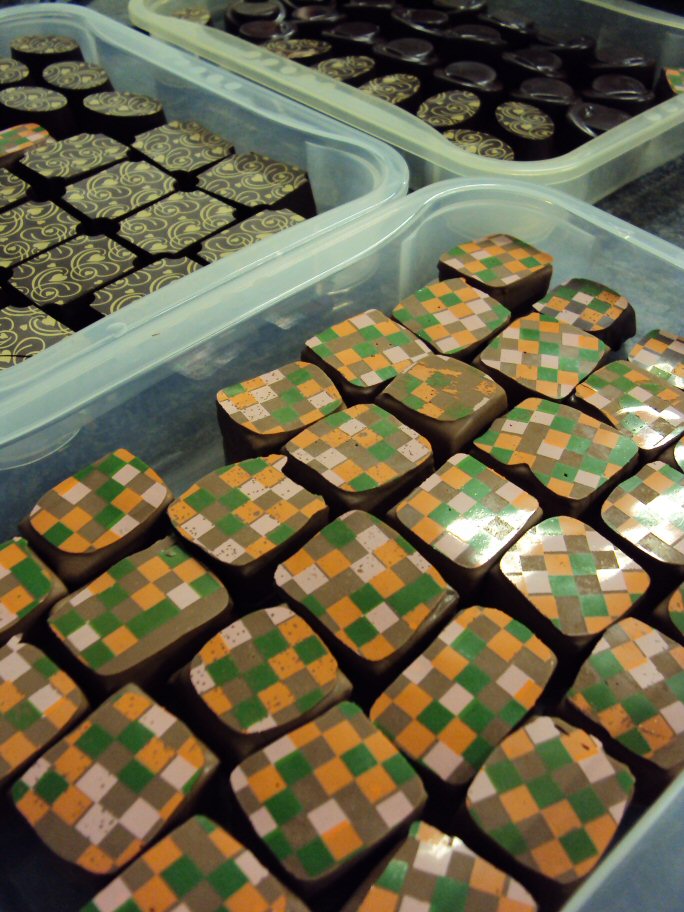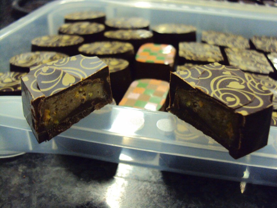 Tags: Pralines caramel alcoolisé, Pralines massepain et pistaches et épice