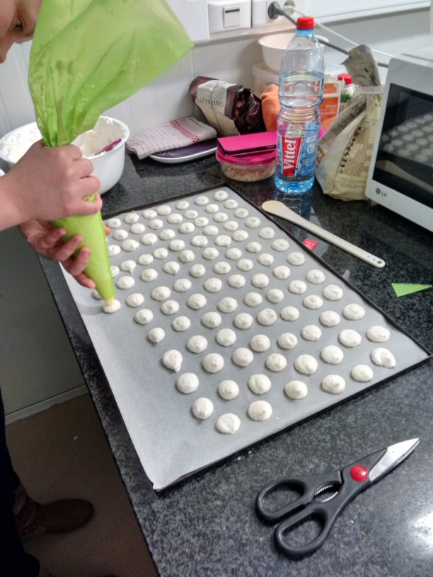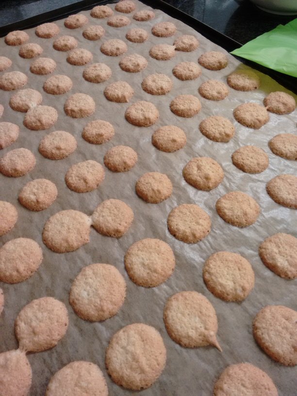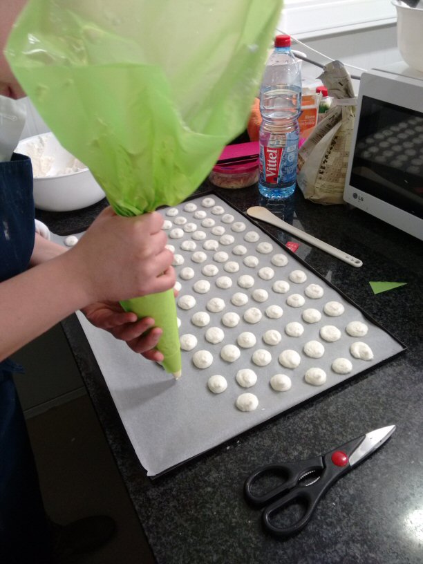 - Dressez sur un papier cuisson, des biscuits ronds de 1,5cm à 2cm maximum.